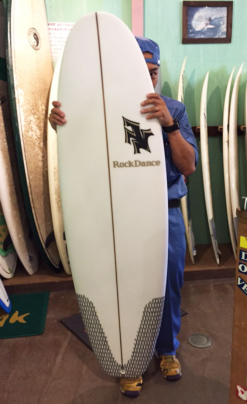 ★花水ローカル、超ベテランサーファー、ドンベイマスターのアッチャンは、ファイヤーワイヤー、パイゼルデザインのSLABを今回は、お選びいただきました!