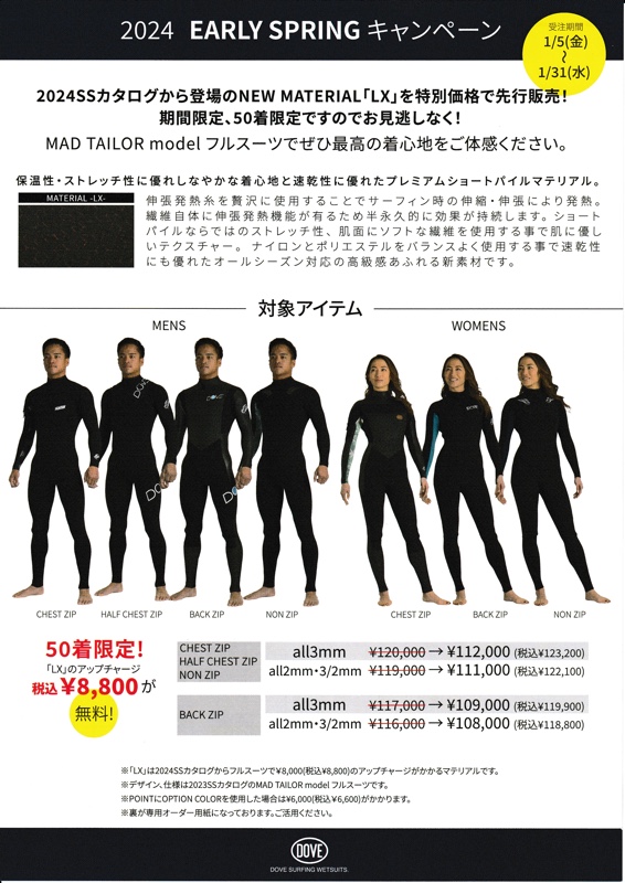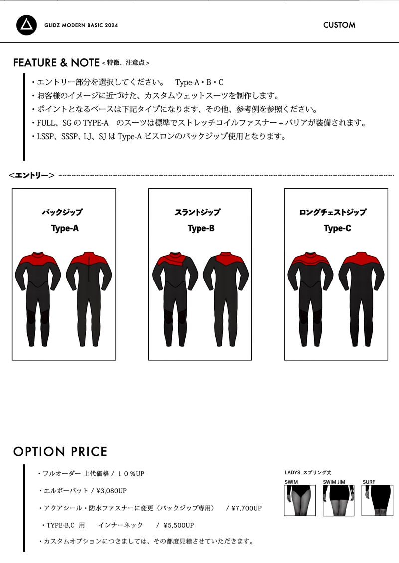 GLIDZウエットスーツ2024スプリング,サマーウエットスーツオーダーフェアー!