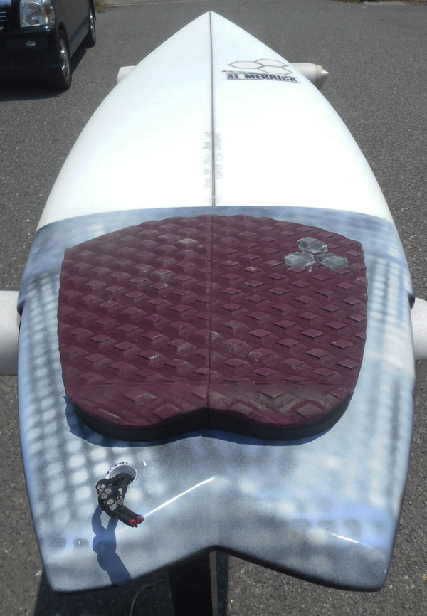 程度は、全オーナーの方がテールに黒でペィティングしてますが、フットマークもごくわずか、キズ、リペア箇所無しでかなり程度良好! 日本正規品、USA本社ラミネート製で、EPSフォーム使用で軽量、反発力抜群、めったに出ないUSEDボード!