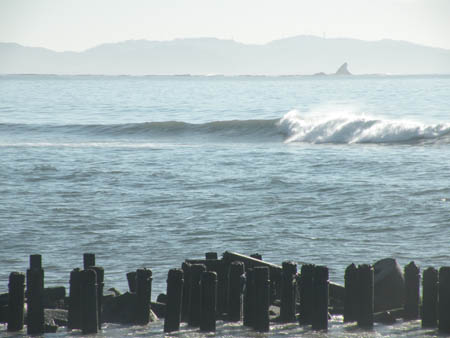 馬入アウトの波です。レギュラーがロングライドできます。快晴でえぼし岩もばっちり見えます。