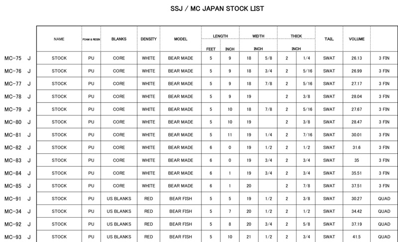★モーリスコール本人によるシェープしたてのニューモデル、ベアーフィッシュとベアーメイドのシェープ済みブランクスがあります!