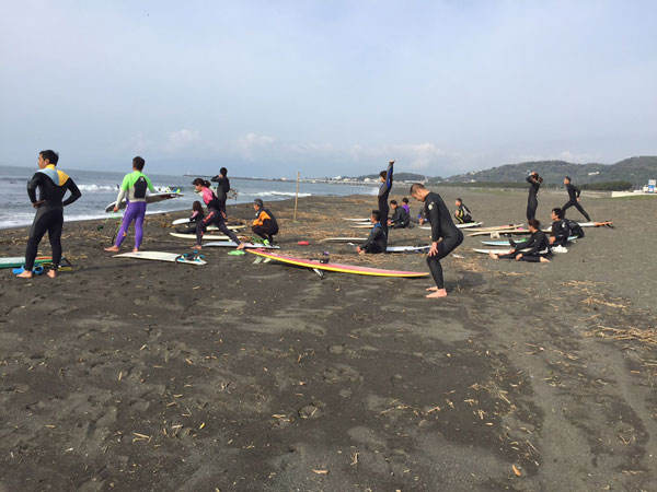 初日最初は、普通の体験スクール同様にまずは、ビーチで、パドルや、テイクオフ、ライディングフォームの指導!