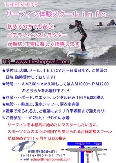 ザショップは国道134号線沿い、花水ポイントの目前にある当店はビーチまで徒歩1分!ロックダンス、TOKORO、FIREWIRE,アルメリックやビギナー用〜クラシック、モールドボードなど常に最新のサーフボードを数多く取り揃え、充実したラインアップ!