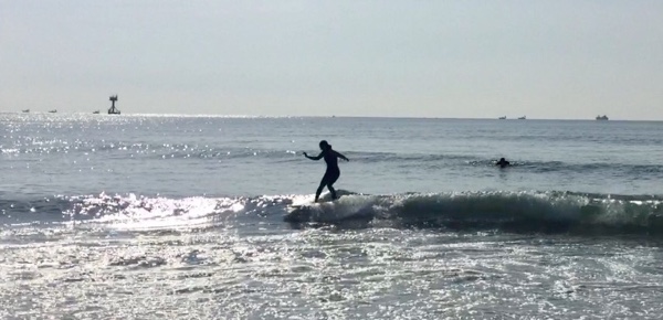Yさんはロングでコンテスト上位入賞目指しノーズライドの練習!