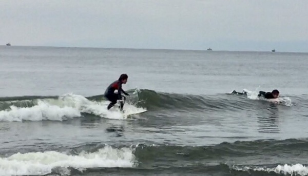スクール生のSさんは入会7ヶ月サーフィン歴も7ヶ月、週末土、日曜日の週2回通われ、もちろん最初はスポンジのロングからスタートし今ではご覧のとうり5フィート代のショートボードでバンバン横に滑れるようになりました!