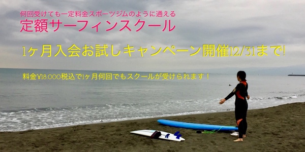 何回受けても一定料金THESHOP定額サーフィンスクール1ヶ月入会お試しキャンペーン!