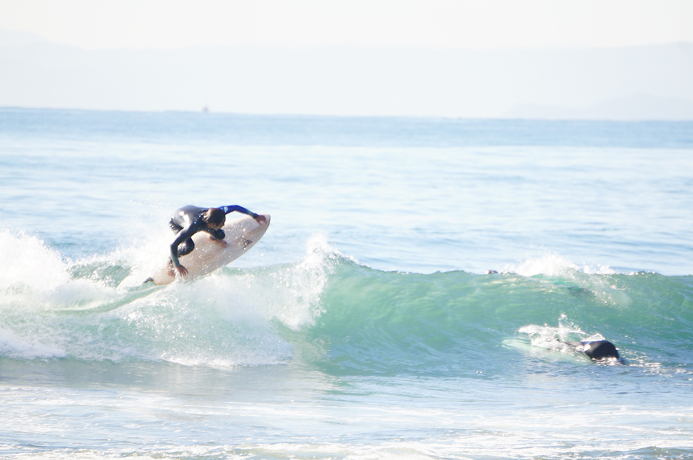 この時の波のサイズは、腹、胸くらいでテイクオフから最初のターンに入るまでの出だしのスピードが大切なあまりパワーの無いコンディションでしたが、このCAMBERは1本目から飛び出しが抜群で凄い加速するのに驚きました!そして幅、厚みがあるにもかかわらず凄くターンの反応、切り替えしもクイックで初めて乗ったボードとは思えない程の扱い易さ、デッキはスーパーフラットまったいらでパドルもし易くとてもイージーに波をキャッチできます!