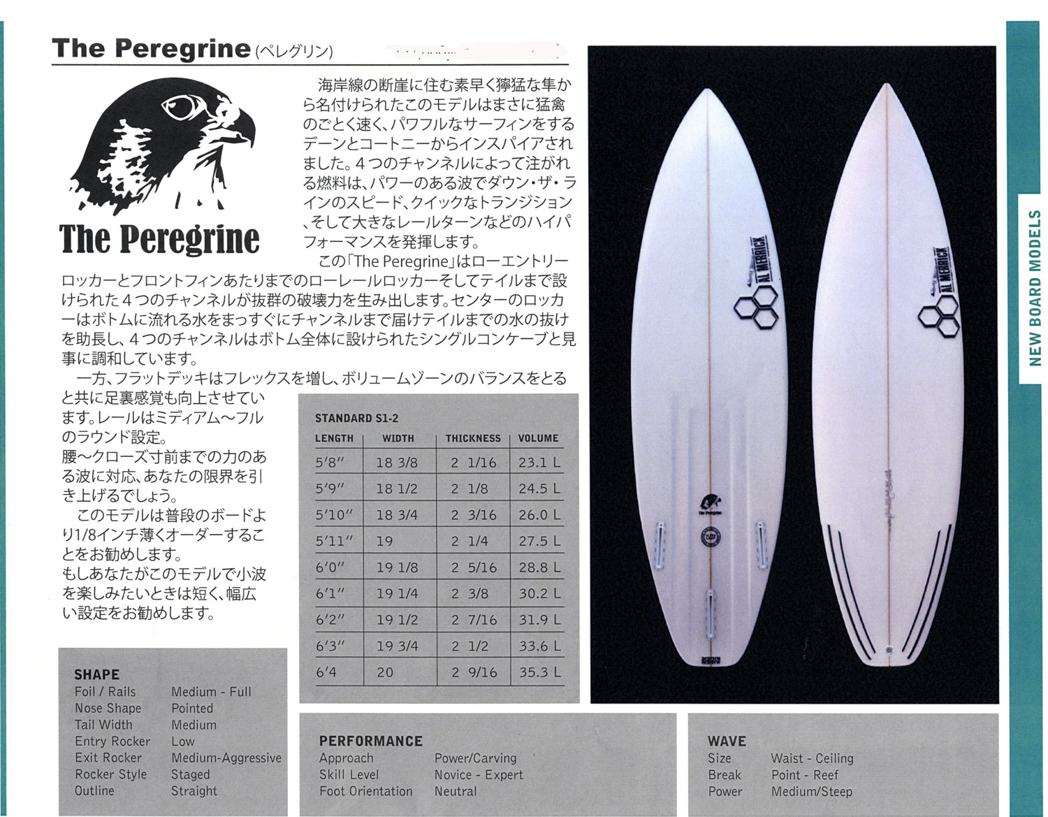 パフォーマンス・ミニボード(DUNPSTER DIVER, NECK BEARD, #4)とハイパフォーマンスボード(PROTON, DFR, ROOKIE, PEREGRIN)の間に位置するモデル。