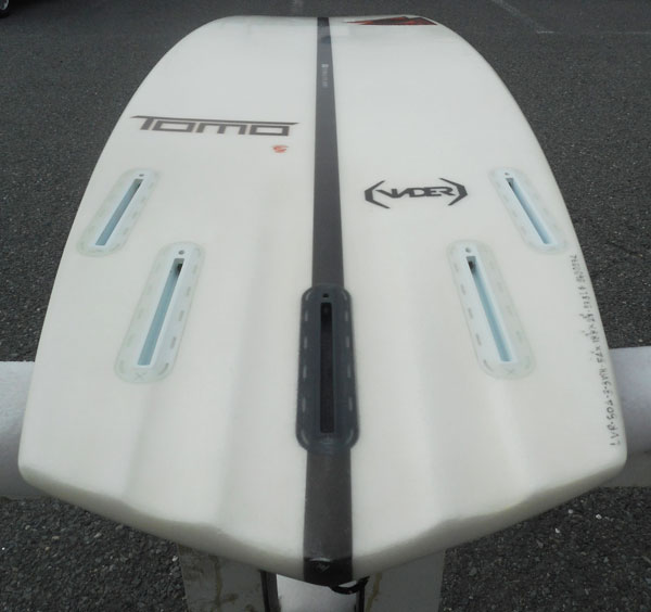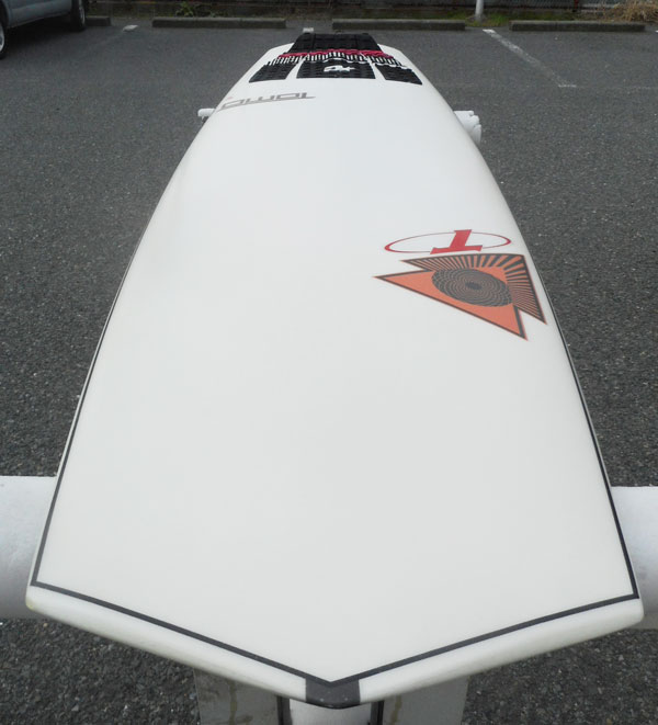 程度は、デッキに、フットマークが少しその他わからないくらいの細かいリペア箇所が数箇所、デッキノーズ部分、ボトムセンターよりに多少の黄ばみは、ありますがまあまあ程度良好!