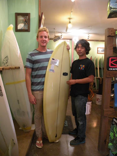 カリフォルニアからアーモンドサーフボード、シェーパー、ディブアリと一時帰国中の智博君が来店!ディブとネイザンアダムスは、今週、木曜日まで、滞在、ナマコン、花水をはじめ、湘南あちこちのポイントでサーフする予定!又、水曜日(6日)は、ナマコンポイントで、アーモンドサーフボード、試乗会もAM9時より開催予定です。詳しくは、TEL又はツイッターで!