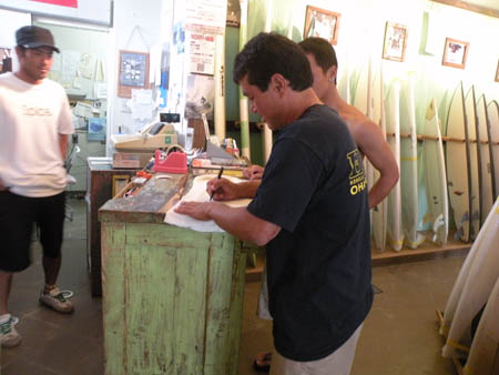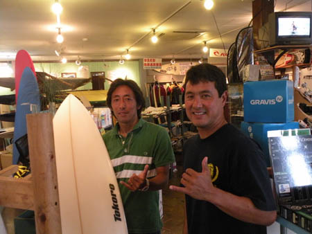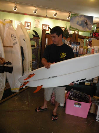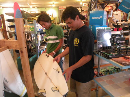 早速、サーフボードについてミーティング!持っているのは、私(CHOBO)のWSWスティンガーフィッシュ!
