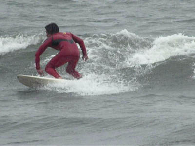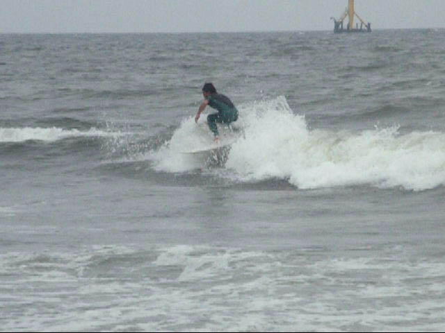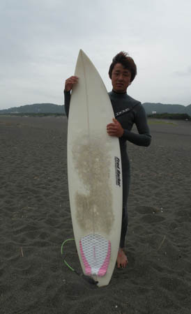 そして、海へ、今日の花水は、南西の風がやや強めのチョッピー、サイズは、膝、腰、インサイド、とろめでショルダーが貼って無く短いブレイク!何とか、ボードをしごいて、1アクションがやっとのコンディション!