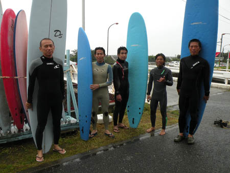 昨日はあいにくの雨で参加者が、減ってしまったものの40代~50代の方を対象としたサーフィン無料体験スクールを腰前後の花水ポイントで開催しました!
