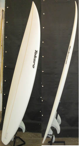 特徴は、ワイドポイントをノーズよりに移動しテイクオフを重視し、ボトム形状は、シングルダブルコンケーブ、レールは、薄めのボキシー。ロッカーも、おさえめで、力がない波でも滑り出し、スピードを出しやすくなっています。更に、オプションのエポキシレジンラミネートにすれば、更に、スピードアップ!