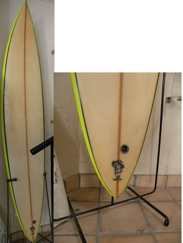 下の動画は、1990年、丸井プロ部原で、トムがトライアルから勝ち上がってく映像です。トムがビーチをボードを持って歩いている時、ボードのテール部分や、フィンの間のボトム部分、注意して見て下さい。モーリスのロゴがバッチリ入ってます。