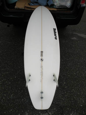 そして、ウェットに着替え、車からボードをだすと、あ、俺もトコロだ。ジェーミーと同じだ。私は、ボードのTOKOROの黒いロゴを見て、急に、うれしくなり、少し、幸せな気分になりました。何時も見てるのになぜか、つい、何時間前まで、海の向こうのハワイ、パイプラインの凄い波でチューブ入りまくってた、ジェーミーオブラインと同じボードを使ってるなんて、もちろん、モデルは、違いますが、何ともいえない、満足感と言うか、幸福感が生まれ、トコロのボードにめぐり会えて、ほんと、良かったと思いました。
