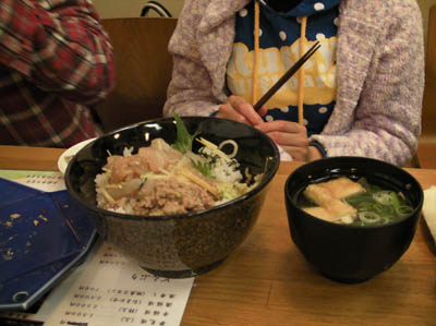 頼んだのは、鯨の竜田揚げ定食と地魚タタキ丼!美味しくて、ボリューム満点、皆さん大満足!