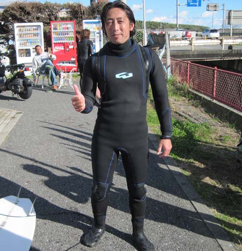 今日CHOBOさんがドライスーツを着て海に入りました!