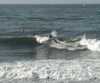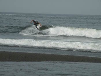 そして、いきなりセットを掴み、お手本となるようなバックサイドの垂直リップ!波が良く見えます。
