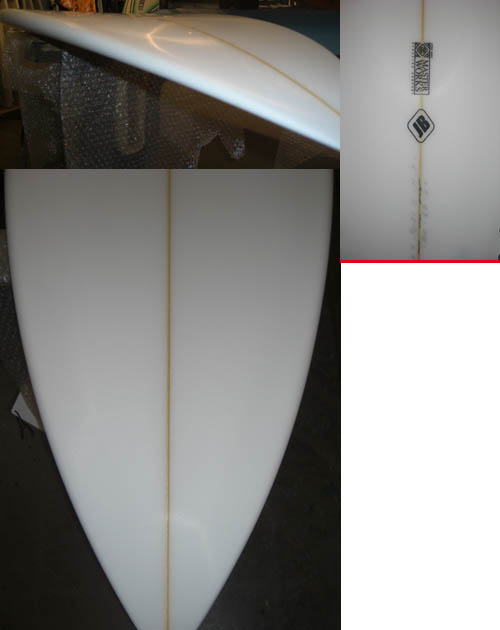 次々とできてくるロックダンス09ニューモデル!今日出来上がってきたのは、高橋誠人シェープのスモール、ミディアムウェーブ用STAB,広めのノーズに絞られたテール、レールは、かどのないハーフボキシー、テールエンドは、深めのⅤボトムになっている。最近良く海で見かけるワイドノーズのツィンを真人の感性でアレンジして、ワイドノーズの欠点であるボトムへ降りるスピードの遅さを上手く改良し、他に類のないニューデザイン魅力的なボードです。