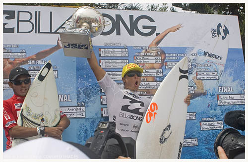 只今、オーストラリア、シドニー、ノースナラビーンで行われていた、ジュニアプロ世界一を決めるビラボンワールドジュニアが終了しました。胸前後の日本の波のようなやや厚めのビーチブレイク、で優勝したのは、ハワイのKAI BARGER,そして、使用していたボードは、トコロでした。トコロのボードが腰、胸のビーチビレイクでも最高と言うのを証明してくれた。今年は、トコロのボードを乗るヤングプロが増えるはず。