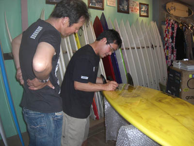 ハワイからトップシェーパーのウェードトコロが来店、ウェードとは、6,7年ぶりの再会、全然変ってませんでした。