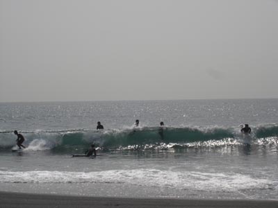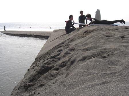 そして、海に入って次々とテイクオフ、今日の花水は、インサイドダンパー、腰前後
