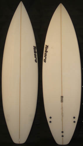 実に8,9年ぶりにオーダーしたトコロ6ロッカー、トコロのボードは、乗りやすいと言う評判を、日本全国に印象付けトコロの名前を一気に有名した今も尚、トコロの数あるモデルの中で人気№1のベストセラーボード、私も昔さんざんお世話になったモデル、なぜ、今再びオーダーしたかと言うと、実は、今年6月にウェードが来日した時、自分の数あるモデルに、何か注文があるかと聞かれ、何かあれば、リクエストに答え、アレンジ、改良を加えてシェープすると言ってくれた。その時は、あえて、EPS使用を、全モデル対応できるようにと言う事ぐらいしかリクエストしなかったのだが、9月位にふと思い付き、ベストセラーの6ロッカーをもういちど乗って見て、世界のトコロに対して生意気なようだが、何か改良点があれば、それをリクエストして、更に乗りやすい、日本のオールラウンドなビーチブレイクに会うようチューナップする。そして、その完成されたモデルを、来年4,5月位にTHESHOP限定6ロッカー、名ずけて、T6として発売できたらと言う考えです。皆さん、楽しみにしていて下さい。